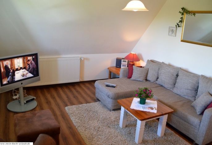 Die Wohnung LUV ist mit zwei Schlafräumen, einem Wohnraum mit SAT-TV, Radio mit CD-Spieler, einer modernen, vollausgestatteten Küche mit Geschirrspüler und Mikrowelle, Duschbad und Flur eingerichtet. Kinderbetten und Hochstühle stehen für die Kleinsten kostenfrei bereit.