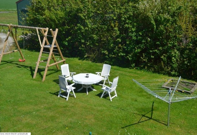 In unserem Garten mit Kinderspielplatz stehen Gartenmöbel und ein Grill zur Verfügung.