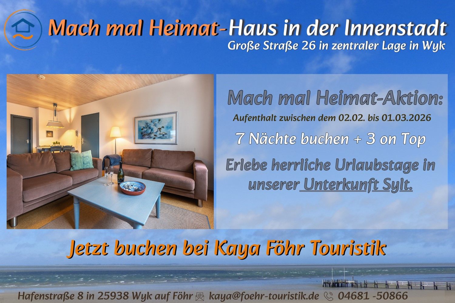 Heimat ist dort, wo du dich wohlfühlst. In der Ferienwohnung Sylt mitten in Wyk bist du nah am Leben und am Meer. Ab einer Woche schenken wir dir drei zusätzliche Nächte.