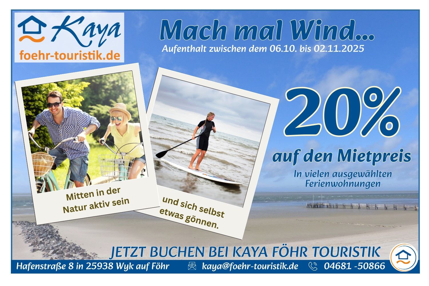Spüre den Wind, wie er dir neue Energie schenkt – ob beim Kiten, Surfen, Segeln oder Stand-up-Paddling auf der Nordsee. Lass bunte Drachen am Himmel tanzen oder genieße die frische Brise bei einem Spaziergang am endlosen Strand. Auf Föhr erlebst du den Wind in all seinen Facetten – mal sportlich, mal ganz entspannt.