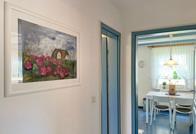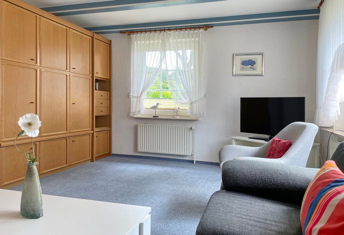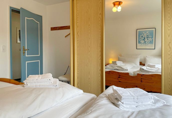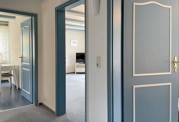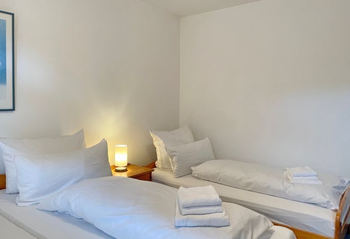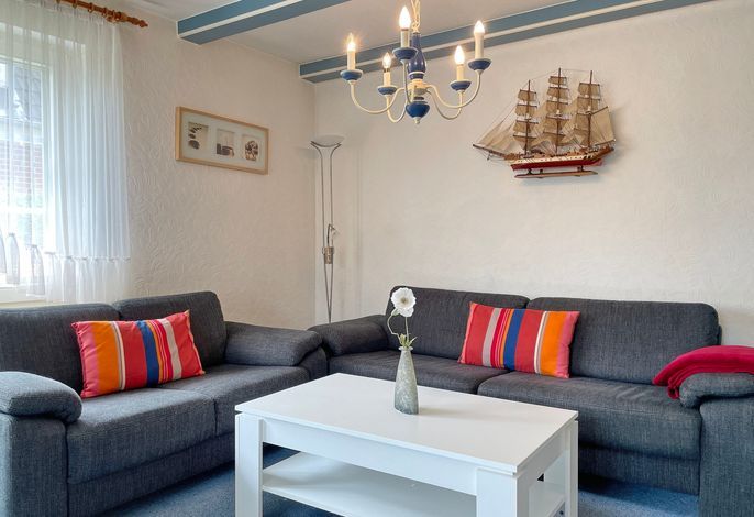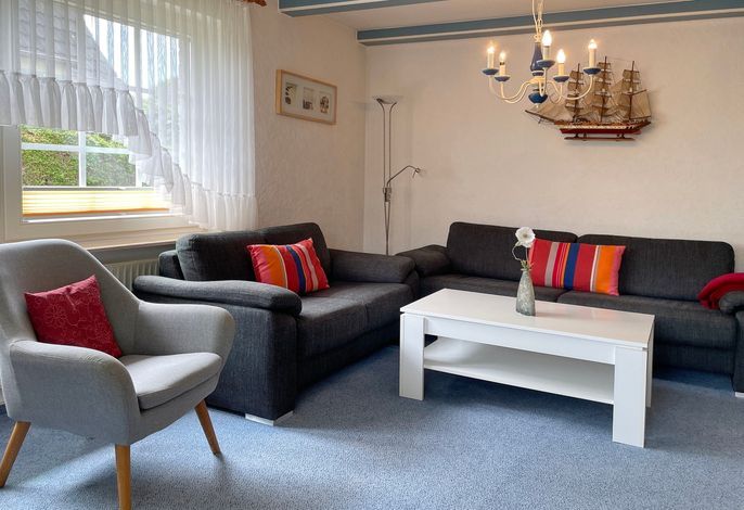 Die behagliche Erdgeschosswohnung Manuela Sieck EG bietet Platz für 4 Personen. Das geräumige Wohnzimmer mit Flachbild-TV, WLAN, CD-Player mit Kassettenfach und einer kleinen Auswahl an Büchern verfügt über eine moderne Sitzgruppe bestehend aus zwei Sofas und einem Lesesessel ist maritim eingerichtet. Hier befindet sich ein gemütliches Doppelschrankbett (160x 200 cm). Die Wohnküche mit Essplatz für 4 Personen, Ceranfeldherd, Backofen, Kühlschrank mit Gefrierfach, Geschirrspüler und Mikrowelle ist gut ausgestattet. Geruhsame Nächte verspricht das Schlafzimmer mit Doppelbett (180x190 cm) und einem Einzelbett (90x190cm) sowie dem geräumigen Kleiderschrank. Das kleine Duschbad mit Fenster ist funktional. Genießen Sie den maritimen Charme dieser Wohnung und verbringen Sie herrliche Urlaubstage. Wunderbar eignet sich dieses Domizil auch für zwei befreundete Familien, die gerne zusammen in Urlaub fahren möchten, dabei aber auch Ihre eigene Ruhezone besitzen möchten. Wir freuen uns auf Ihren Anruf!