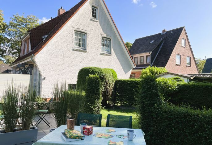 Im Halligweg 14a befindet sich in ruhiger Lage dieses schöne Ferienhaus mit zwei Wohnungen für je 4 bis 5 Personen (davon ein Kind, dass maximal 12 Jahre ist). Hier können Sie herrliche Urlaubstage verbringen. Das Friesenmuseum und das Aquaföhr, unser Meerwasserwellenbad mit Fitnessstudio und Sauna sowie verschiedenen Angeboten von Kuranwendungen sind in unmittelbarer Nähe ebenso das Wäldchen mit dem Abenteuerspielplatz Löwenhöhle, der bei Kindern besonders beliebt ist. Die Wyker Innenstadt erreichen Sie ebenfalls in wenigen Minuten. Das Ferienhaus Manuela bietet weiterhin eine Waschmaschine und einen Trockner (gegen Gebühr) zur gemeinschaftlichen Nutzung an sowie eine gemeinsame Nutzung eines Fahrradunterstellplatzes. Im Garten gibt es zwei kleine Terrassen, die durch einen Sichtschutz voneinander getrennt werden können (eine Zuordnung zu einer Wohnung gibt es nicht).