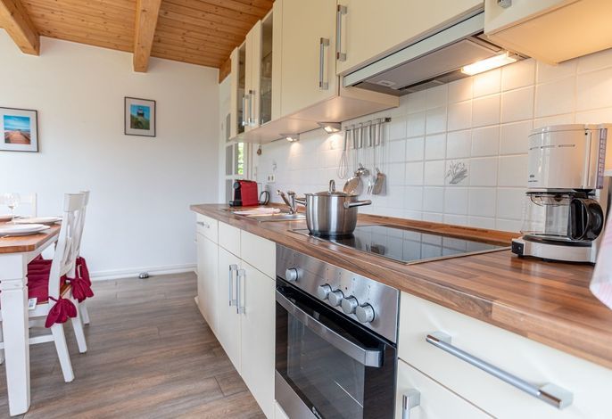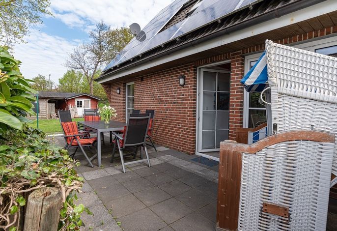 Außerdem eine Terrase mit Tisch und Stühlen. Das große Schlafzimmer ist mit einem Doppelbett sowie einem geräumigen Kleiderschrank ausgestattet. Das zweite und das dritte Schlafzimmer sind mit einem kleineren Doppelbett (2,0 m x 1,60 m) und einer geräumigen Kleiderkommode ausgestattet. In der modernen Küche haben Sie auch die Möglichkeit mit bis zu 6 Personen zu speisen. Die Küche ist großzügig ausgestattet und hat selbstverständlich auch einen Geschirrspüler und einen Backofen. Der gemütliche Wohnbereich ist mit einem großen Ecksofa sowie einem Flat TV ausgestattet. Am großen Esszimmertisch haben Sie auch die Möglichkeit, mit der ganzen Familie zu essen oder zu spielen. Von hier aus haben Sie Zugang zur Terrasse. Hier stehen Ihnen Gartenmöbel, Sonnenschirm, Strandkorb und Grill zur Verfügung. Im Garten finden Sie Spielgeräte für die Kinder sowie eine individuell nutzbare Grünfläche. Ein Parkplatz und ein Carport für Ihren Pkw und für Ihre Fahrräder sind vorhanden.