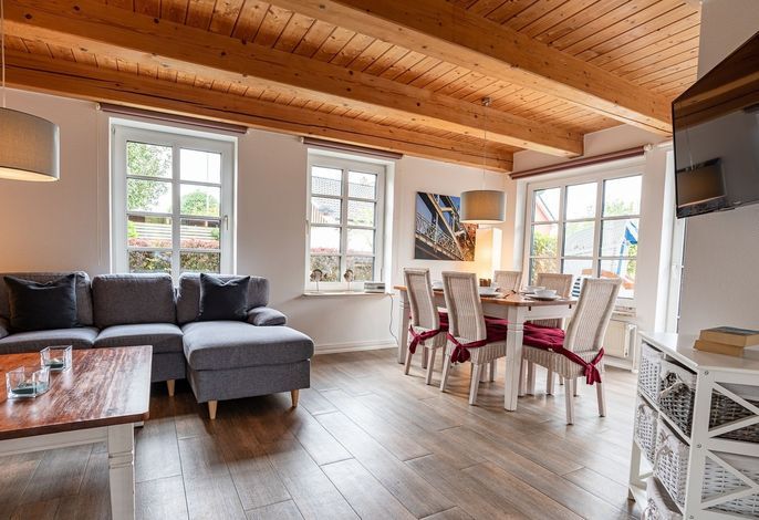 Komfortables Urlaubsquartier mit schönem Garten in zentraler Lage für bis zu 6 Personen. Das Quartier mit ca. 80 m² Wohnfläche hat 3 Schlafzimmer, 1 Badezimmer mit Dusche und 1 Gäste-WC.