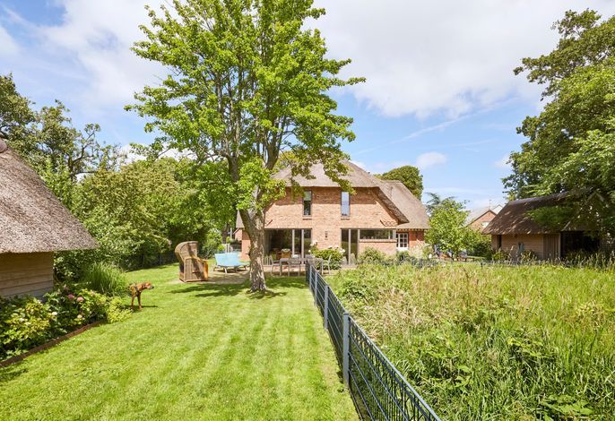 Verlieben Sie sich auf den ersten Blick in das über 100 Jahre alte reetgedeckte friesische Bauernhaus „Maria Gardina 1530[nbsp] - die Nachbarhaushälfte nennt sich Maria Gardina 1903 - in wundervoller Lage mit traumhaftem Blick auf die freie Geestlandschaft und sonnigem Bauerngarten. In der Atmosphäre eines großzügigen Privathauses mit Kunst, außergewöhnlicher Einrichtung und hochwertiger Haustechnik werden alle individuellen Wünsche nach Inspiration, Kreativität und Komfort erfüllt. Im Rahmen der denkmalgerechten Restaurierung wurde Wert auf den konsequenten Einsatz nachhaltiger und ökologischer Baustoffe gelegt. Die klare Abgrenzung von Neu zu Alt als spannender Kontrast zieht sich- immer wieder sichtbar- durch das Konzept des gesamten Objektes. Im besonderen Ambiente der exklusiven Sauna mit Raindance- Dusche und marokkanischen Fliesen finden Sie die Ruhe und Entspannung nach einem besonderen Urlaubstag auf Föhr. Der Wohn- und Essbereich bietet durch große Fensterschiebeelemente einmalige Blicke in den sonnigen Garten mit hochwertigem Outdoormöbeln.