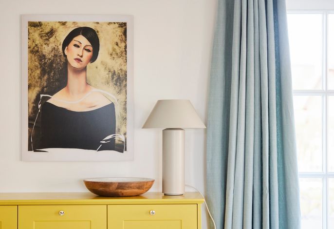 Wir begrüßen Sie in der Marschkajüte. Die Nähe zur Marsch und die Liebe zum norddeutschen Lebensstil waren Namenspaten für dieses Urlaubsdomizil. In bester Nachbarschaft reetgedeckter Friesenhäuser befindet sich diese schöne Reetdachdoppelhaushälfte am Rande von Oldsum. Eine moderne, hochwertige und gemütliche Einrichtung, gepaart mit etwas Inselflair, macht den Urlaub zum Wohlfühlerlebnis. Sanfte Farben wie Eukalyptusgrün und frisches Zitronengelb [nbsp]werden kombiniert. Spüren Sie den leichten Nordseewind beim Frühstück auf der Terrasse, dann geht’s zur Radtour über die Insel. Ein Abendspaziergang zum Naturstrand in etwa 1300 Metern Entfernung und danach gemütlich am Kamin entspannen, so lässt man einen perfekten Urlaubtag ausklingen.