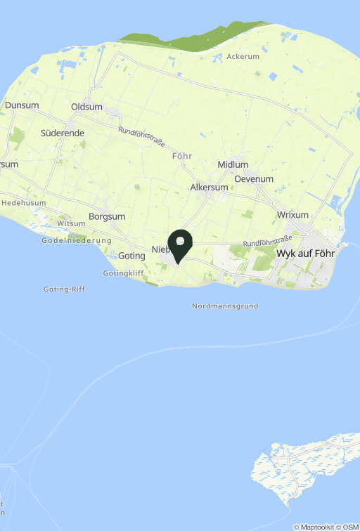 Das Meets Hüs ist ruhig gelegen im schönen Kapitänsdorf Nieblum. Von hier aus laufen Sie 10 Minuten zum Sandstrand von Nieblum und wenige Gehminuten zum Zentrum. Hier befinden sich zahlreiche Cafés und Restaurants. Auch einen kleinen Einkaufsladen und einen Bäcker finden Sie im Dorf.