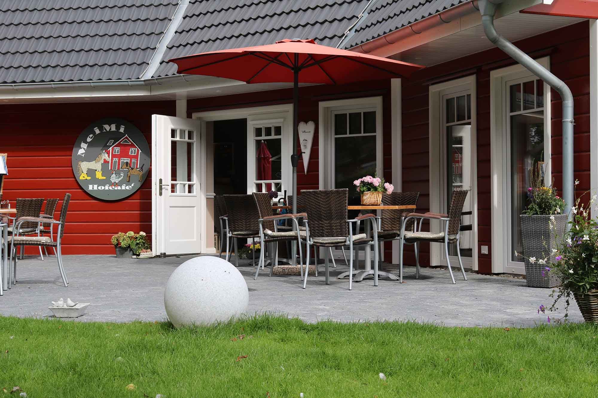 Hier backt der Bauer noch selbst! Variierend gibt es im Hofcafé MeiMi täglich frisch gebackene Torten und Kucken, leckere Eisbecher und duftende Waffeln. In den Wintermonaten gibt es zusätzlich köstliche Bratäpfel am gemütlichen Kaminofen, sowie Tee- und Kaffeevariationen. Vom eigenen Bio Angusrind werden Ihnen herzhafte kleine Spezialitäten serviert.