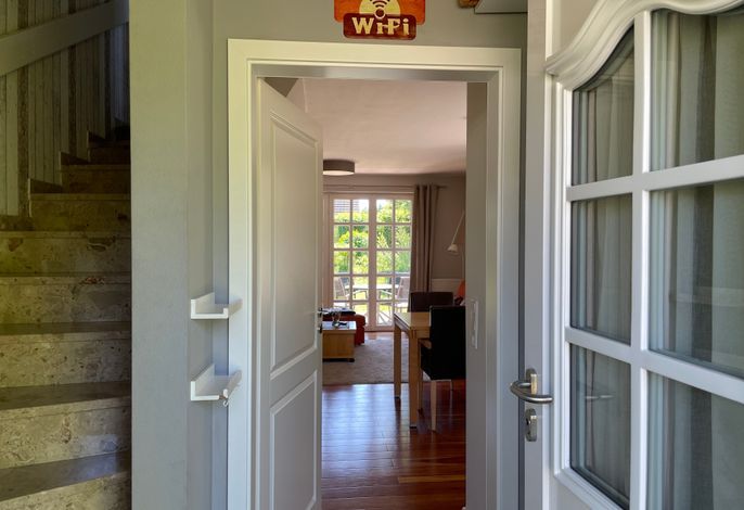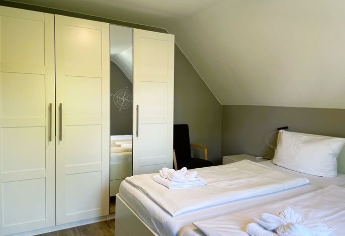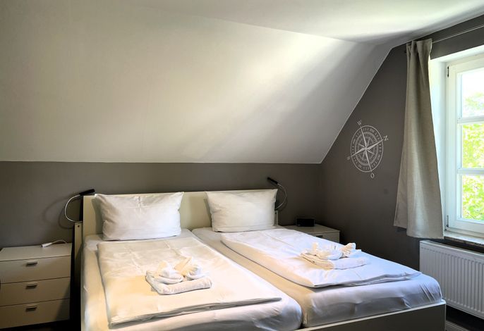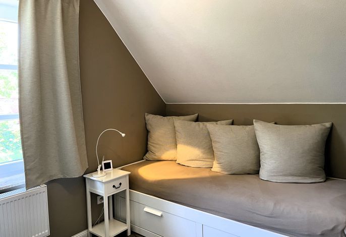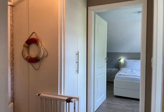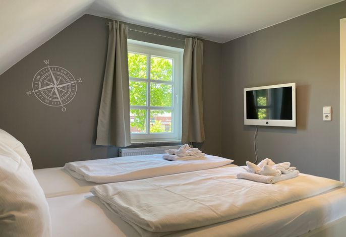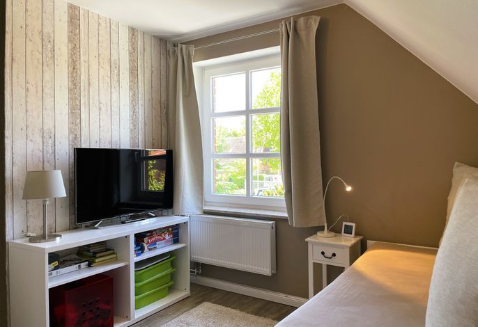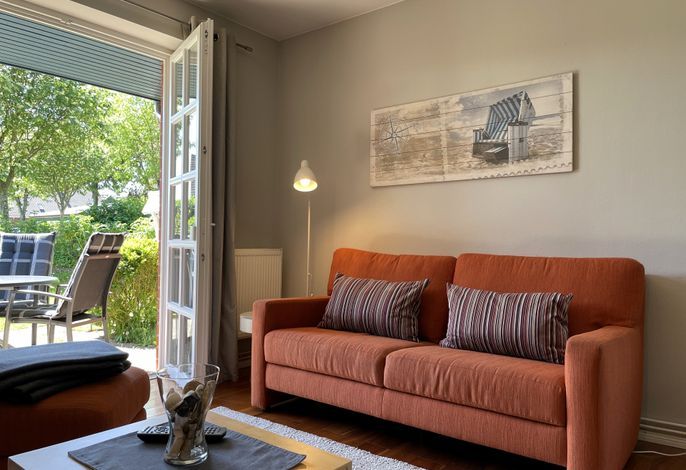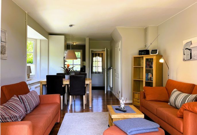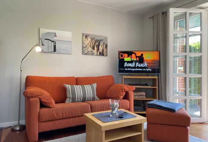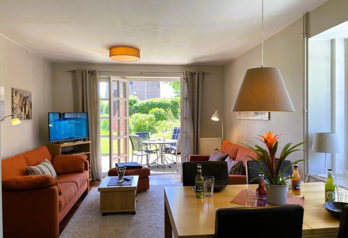Herzlich willkommen in unserem Reihenendhaus Meine Insel, Ihrem perfekten Rückzugsort für Paare und Familien. Auf ca. 60 qm bietet die Nichtraucher-Wohnung Platz für 1 bis 4 Gäste und besticht durch eine gemütliche Ausstattung mit Inselflair. Im Erdgeschoss erwartet Sie ein heller Wohnbereich mit integrierter Essecke sowie eine offene, gut ausgestattete Küche mit Backofen, Ceranherd, Spülmaschine und einer kostenfreien Waschmaschine – ideal für einen längeren Urlaub. Es stehen ein Flachbildfernseher (3 im gesamten Haus, davon 2 Smart-TVs) und ein Internetradio (mit Spotify-Connect) zur Verfügung. Vom Wohnzimmer gelangen Sie direkt auf die teilüberdachte Südwest-Terrasse, die in den Sommermonaten mit Gartenmöbeln, Sonnenschirm und Strandkorb zum Sonnen und Relaxen einlädt während Kinder sich im angrenzenden Gemeinschaftsgarten austoben und sich am Spielgerät mit Schaukel erfreuen können. Über eine Treppe erreichen Sie die Schlafbereiche und das Bad. Das Elternschlafzimmer ist mit einem komfortablen Doppelbett (180 cm x 200 cm mit 2 Einzelmatratzen) ausgestattet, während das Kinderreich mit zwei Einzelbetten (90 cm x 200 cm) , einer Auswahl an Gesellschaftsspielen und Büchern sowie eine Spielkiste (Lego/Playmobil) kleine Gäste begeistert. Hier befindet sich auch ein gemütliches Tagesbett für eine kleine Auszeit. Das moderne Badezimmer verfügt über eine Dusche, einen Handtuchheizkörper und ein Fenster, das für Tageslicht und Frischluft sorgt. Ihr Auto können Sie direkt auf dem eigenen Parkplatz abstellen.