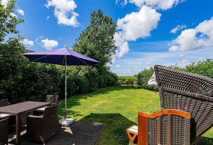 Willkommen im Muck's Blick Süd. Im ruhigen Nieblumer Ortsteil Goting steht dieses exklusive, aus zwei Wohneinheiten bestehende Ferienhaus. Sie bewohnen die Erdgeschoss-Wohnung, welche sich auf einem rundum schön gestaltetem Grundstück mit eigenen sichtgeschützten Garten- und Terrassenbereich befindet. Der herrlichen Blick über die Wiesen und Felder bis zum Meer läßt richtiges Urlaubsfeeling aufkommen. Die unmittelbare Nähe zum Meer und zum Goting-Kliff zeichnet die Lage des Objektes aus. Das Dorf Nieblum mit seinen Einkaufsmöglichkeiten, Restaurants und Cafés ist in wenigen Gehminuten zu erreichen.