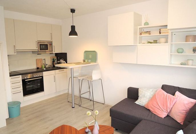 Modern eingerichtete und 2014 renovierte Wohnung im 1. Stock mit großem Südbalkon. Nähe Friesenmuseum und Post. Zum Zentrum, Strand, Wellenbad und Kurmittelhaus sind es nur ca. 10 Gehmin.