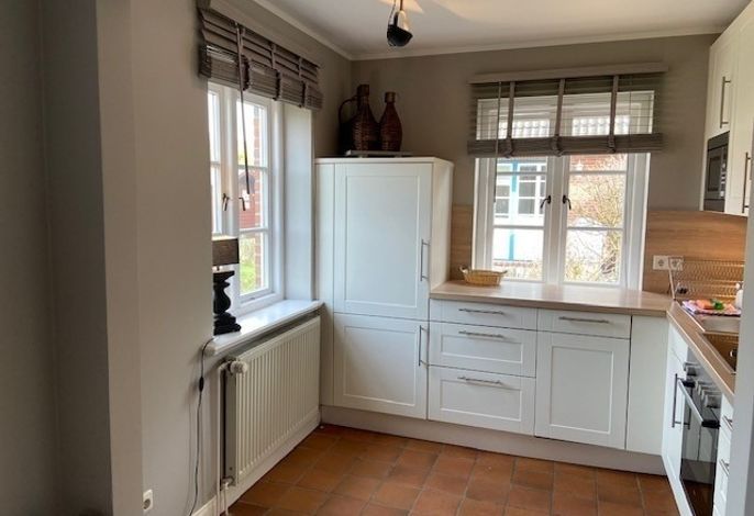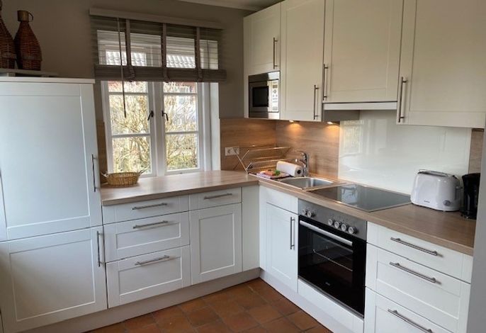 Im Erdgeschoss gelangen Sie vom kleinen Flur mit Garderobe und Gäste-WC in den Wohnzimmerbereich mit großer Couchlandschaft, sowie eine offene, moderner Einbauküche und separatem Essplatz. In der vollausgestatteten Küche finden Sie unter anderem: Cerankochfeld und Ofen, den Kühlschrank mit Gefrierfach, Mikrowelle, Geschirrspüler, Wasserkocher, Toaster, Kaffeemaschine, ausreichend Geschirr, Pfannen und Töpfen zum Kochen. Für Unterhaltung sorgen SAT-TV, DVD-Player und Stereo-Anlage. Ein kostenfreier Internetzugang stellen wir gern zur Verfügung. Zum Erholen und Entspannen steht eine Sauna im Untergeschoss bereit. Auch können Sie hier gegen Gebühr die Waschmaschine und Trockner nutzen.