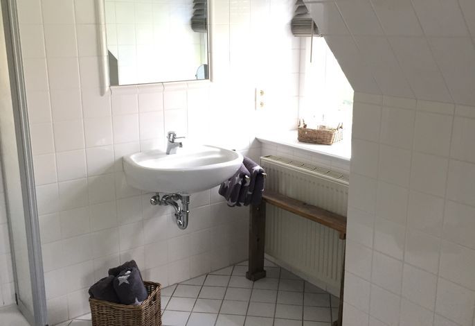 1x Doppelbett mit eigenem Zugang zum Duschbad und WC; 1x mit 2 Einzelbetten. Hier gelangen Sie zum zweiten Bad mit Dusche/WC.