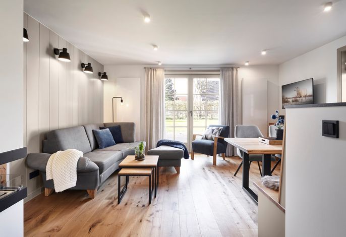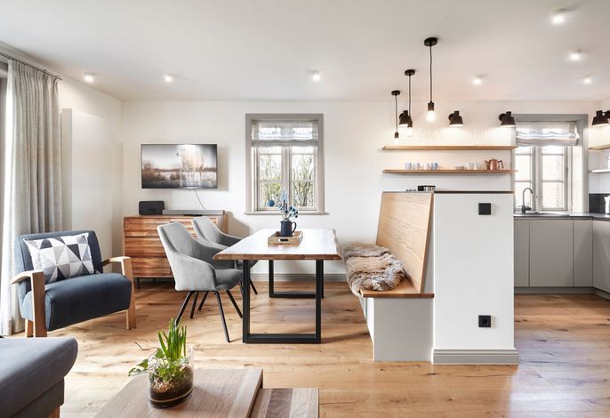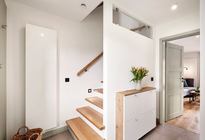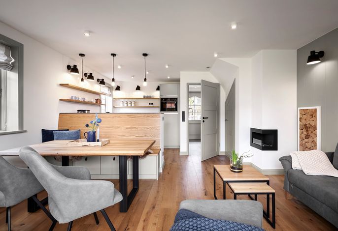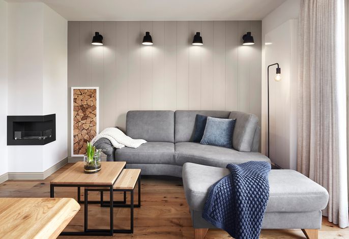 Nordic Steel - der Name spiegelt den Stil des Hauses wieder. Die Einrichtung ist inspiriert vom klaren Look des Nordens und die schwarzen Akzente bilden einen tollen und modernen Kontrast. Die Einrichtung wurde mir viel Bedacht gewählt und die Einbauten sind geprägt durch schöne Tischlerarbeiten. Gemütlichkeit und Wohlfühlen steht im Vordergrund und mit viele Liebe wurde auch an die kleinen Details gedacht. Der Kamin im Wohnzimmer wird mit Ethanol betrieben und ist Garant für küschelige Stimmung am Abend. Direkt von der Terrasse ist auch das Saunahaus zugänglich. Hier ist der Wellness-Faktor groß für Sie. Die Lage am Ende einer kleinen Sackgasse ist sehr zentral gelegen und der nächste Bäcker ist auch nur ein paar Gehminuten entfernt. Wann buchen Sie das Nordic-Steel?