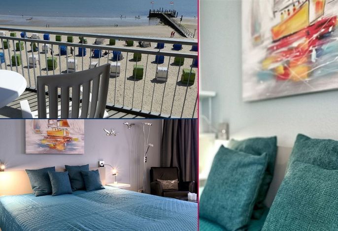 Die Wohnung befindet sich im 2.OG mit besonders guter Aussicht auf den Strand und das Meer. Einmalig ist der weite Blick aus dem südöstlich zum Meer ausgerichteten Fenster und der bodentiefen Tür im Wohn-/Schlafzimmer. Bei diesem Wohnungstyp liegt der Schlafbereich auf der Meerseite des Hauses, hier hören Sie das Meeresrauschen bei offenem Fenster auch beim Einschlafen.