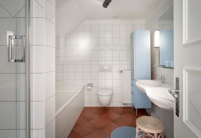 Die Ferienwohnung Nordseestern in Wyk auf Föhr bietet Platz für maximal 5 Personen. Sie befindet sich in der 1. Etage und verfügt über zwei Schlafzimmer sowie zwei Badezimmer. Eines mit Dusche und WC und das zweite mit Dusche, WC und Badewanne.