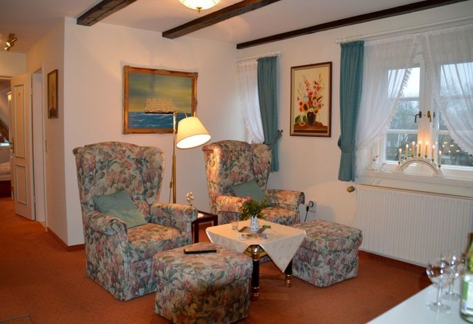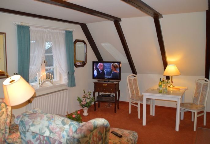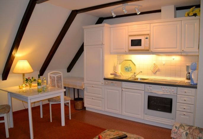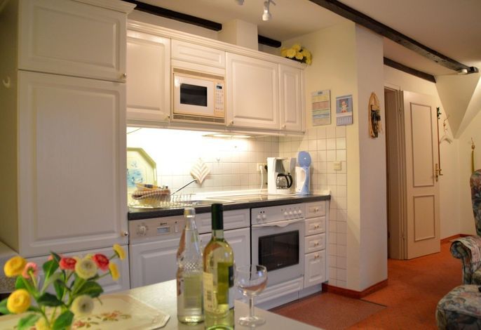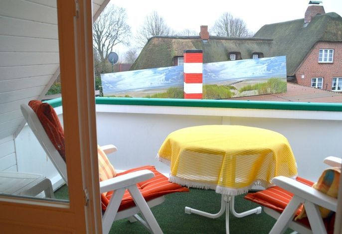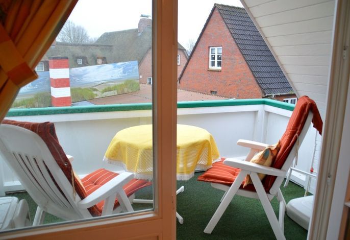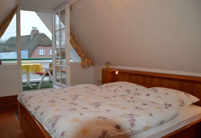Ihre 2 Zimmer Ferienwohnung befindet sich im 1. Obergschoss und verfügt über einen übderdachten Südbalkon mit Balkonmöbeln sowie einem Sonnenschirm. Das helle Schlafzimmer hat Zugang zu Ihrem Südbalkon. Das Wohnzimmer ist ausgestatte mit einem SAT-TV-Flachbildfernseher, WLAN, DVD-Player sowie Radio. Das Schlafzimmer ist mit einem Doppelbett ausgestattet. Eine moderne Küchenzeile (komplett ausgestattet) und das Badezimmer mit Dusche gehören ebenfalls zur Ausstattung. Eine Unterstellmöglichkeit für Fahrräder ist vorhanden.