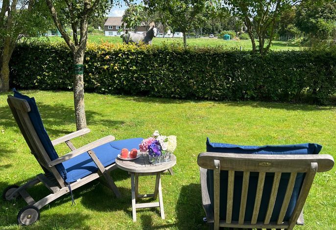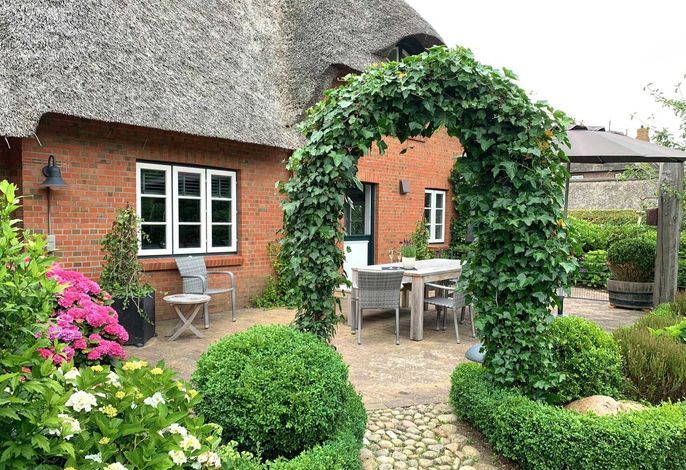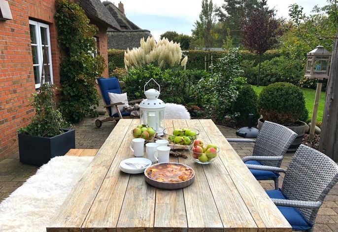 Leben Sie die Föhrer Leidenschaft im exklusiven Einzelhaus unter Reet. Eine hochwertige Einrichtung wird durch liebevolle Details ergänzt und schafft das individuelle Inselfeeling. Erleben Sie die Sonne, das Salz und den Wind auf der Haut, entdecken Sie das Watt, das Land und die Stille. Spüren Sie Freiheit beim Anblick der Vogelschwärme und der Weite des Meeres. Genießen Sie Ihren Lieblingskaffee, frisch gebrüht am historischen Kachelofen oder im Strandkorb auf einer der beiden Terrassen im eingewachsenen Garten.Nur ein kurzer Fußweg führt Sie ins Dorf, wo charmante Cafés, geschmackvolle Restaurants und individuelle Boutiquen zum Entspannen und Abschalten einladen.Die entgegengesetzte Richtung führt Sie fußläufig in 10 Min. an den weißen, kilometerlangen Strand mit Blick auf die Halligen und die Nachbarinsel Amrum.Die Föhrer Leidenschaft –entschleunigt, entspannt, erholt.Genießen Sie Ihren Lieblingskaffee, frisch gebrüht im Vollautomat am historischen Kachelofen oder im Strandkorb auf einer der beiden Terrassen im eingewachsenen Garten.Der Saunabereich , Finnischer Sauna (90°C), Regenschauerdusche, Ruheraum und direktem Zugang in den uneinsehbaren Garten warten auf Sie. Im großen Familienbad,ebenfalls mit Regenschauerdusche und kuscheligen Wärmeliegen, runden Sie Ihren Strandtag ab.