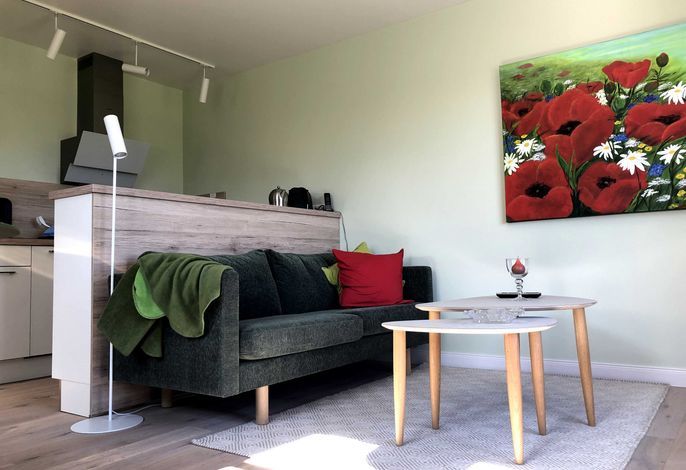 Die Ferienwohnungen sind im skandinavischen Design individuell eingerichtet und bestechen durch ihre ruhige Lage mitten im Grünen.