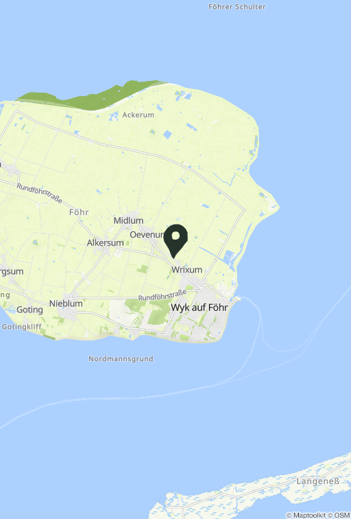 Wyk mit allen Sehenswürdigkeiten wie Hafen, Promenade mit vielen kleinen Geschäften und dem Sandstrand ist mit dem Rad schnell in 10 Minuten zu erreichen. In Wrixum befinden sich ein Bäcker, zwei Restaurants sowie ein Fahrradverleih. Golfer finden ihr Glück auf dem 27 - Loch Golfplatz der Insel, der vom Pastoratshof nur 6,3 km entfernt ist.