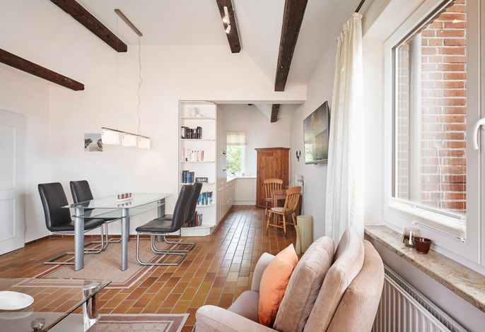 Wohnen am Wyker Südstrand im Haus Pidder Lyng. In der ersten Reihe am Meer finden Sie in Haus Pidder Lyng drei schöne Apartments, die zum Urlaub am Meer einladen. Fühlen Sie die Nordseebrise und hören die Nordseewellen rauschen. Nur wenige Schritten und Sie haben Sand unter Ihren Füßen. Auf dem Balkon der Wohnung 1 im Obergeschoss genießen Sie Ihr Frühstück und sehen das Meer glitzern, wenn Sie zur Seite blicken. Die Wohnung ist der perfekte Ausgangspunkt für Ihren Urlaub auf Föhr. Nur wenige Schritte und Sie sind auf der Promenade, die Sie ins Herz von Wyk führt.