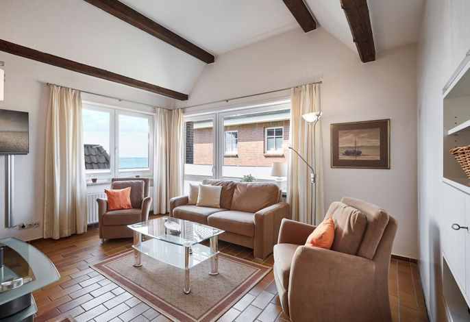 Wohnen am Wyker Südstrand im Haus Pidder Lyng. In der ersten Reihe am Meer finden Sie in Haus Pidder Lyng drei schöne Apartments, die zum Urlaub am Meer einladen. Fühlen Sie die Nordseebrise und hören die Nordseewellen rauschen. Nur wenige Schritten und Sie haben Sand unter Ihren Füßen. Auf dem Balkon der Wohnung 1 im Obergeschoss genießen Sie Ihr Frühstück und sehen das Meer glitzern, wenn Sie zur Seite blicken. Die Wohnung ist der perfekte Ausgangspunkt für Ihren Urlaub auf Föhr. Nur wenige Schritte und Sie sind auf der Promenade, die Sie ins Herz von Wyk führt.