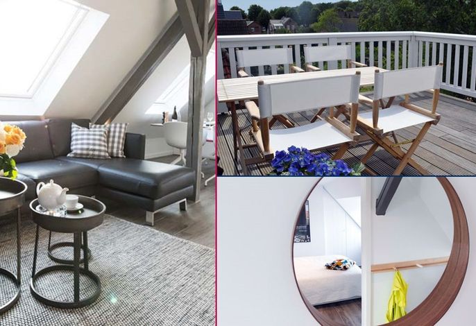 Zu den Highlights der Ferienunterkunft zählen wir u. a. die Dachterrasse, sowie die zentrale und strandnahe Lage am Rande der Wyker Fußgängerzone.