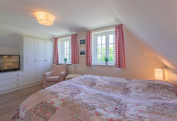 Ein typisches Friesenhaus mit sehr schöner Architektur. Die Summe schöner Details Holzsprossenfenster, Reetdach, schöne Fliesen und Holzarbeiten - schafft eine wunderbare Atmosphäre. Im Erdgeschoss befindet sich ein großes, modern eingerichtetes Wohnzimmer mit Essplatz, von welchem Sie direkt auf auf die ca. 36 qm große Terrasse gelangen. Desweiteren eine moderne Küche, ein Schlafraum, sowie Diele, Bad und HWR. Im Obergeschoss sind zwei Schlafzimmer mit integrierten Bädern und die hauseigene Sauna. In nur wenigen Gehminuten gelangen Sie ebenso zum Südstrand, wie auch zum Golfplatz und die Waldspaziergänge können direkt vor der Tür starten. Alle Erholungs- und Einkaufsmöglichkeiten sowie Cafes und Restaurants liegen ca. 1,5 km entfernt.