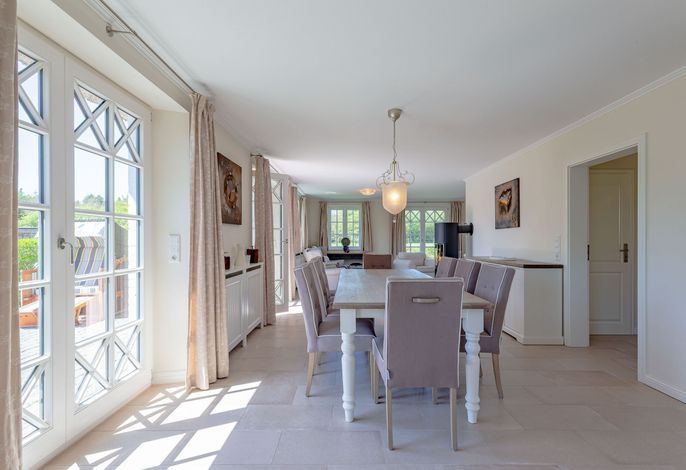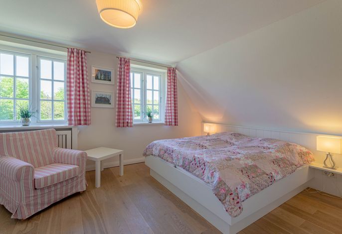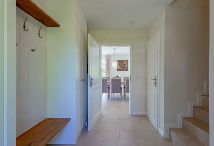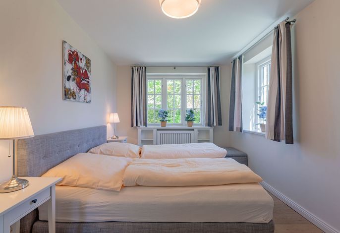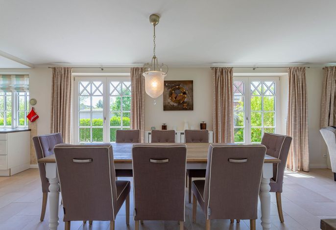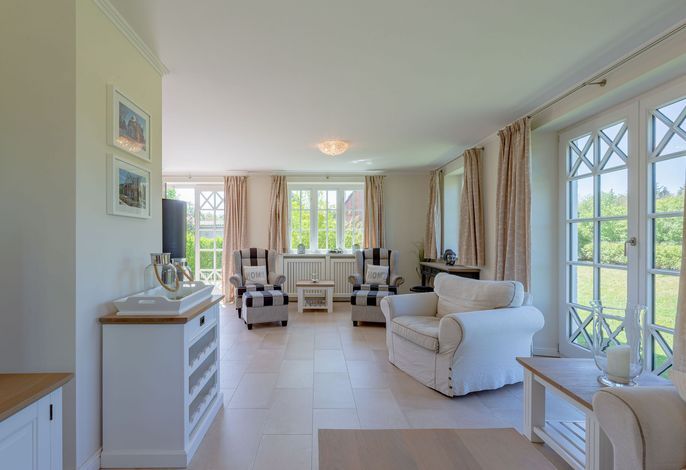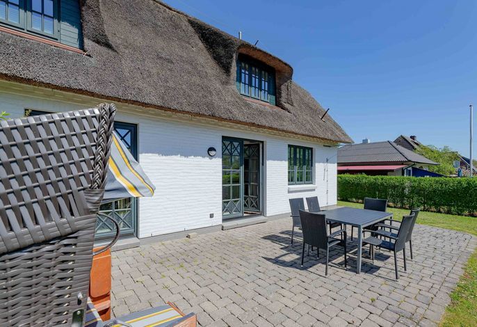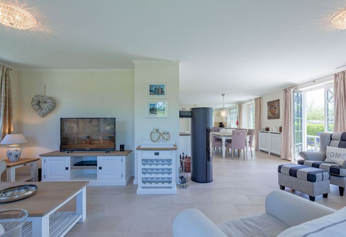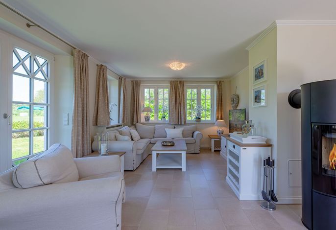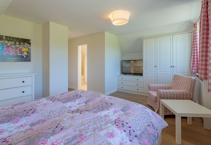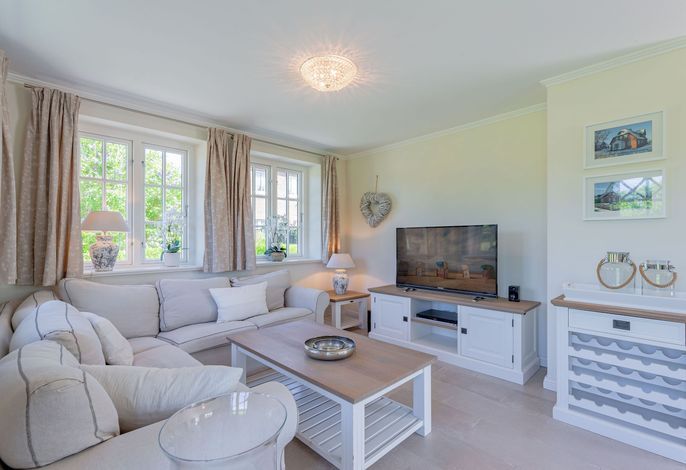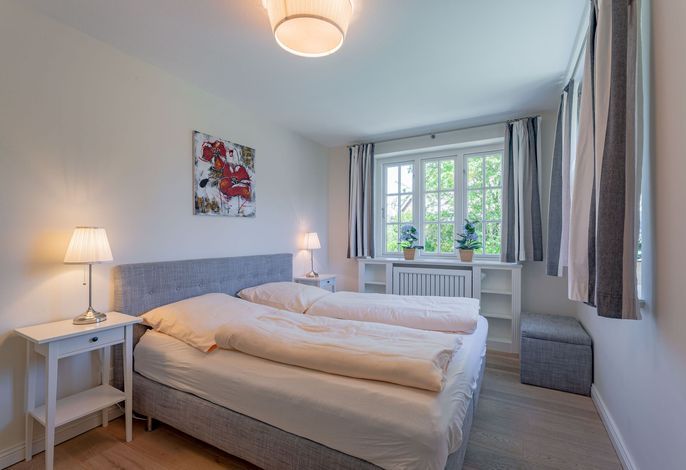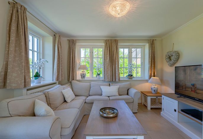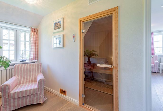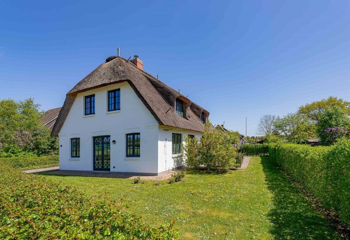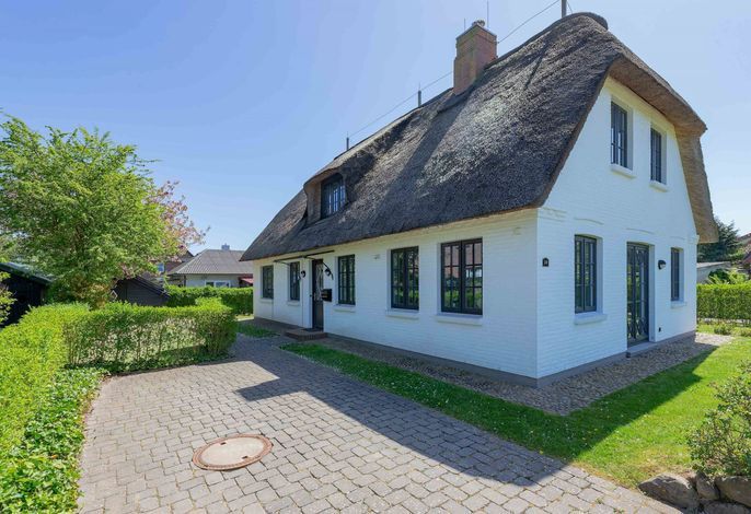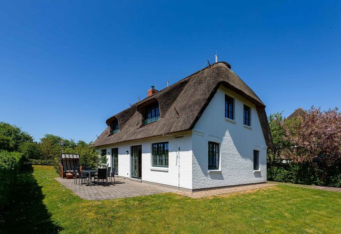 Ein typisches Friesenhaus mit sehr schöner Architektur. Die Summe schöner Details – Holzsprossenfenster, Reetdach, schöne Fliesen und Holzarbeiten - schafft eine wunderbare Atmosphäre. Im Erdgeschoss befindet sich ein großes, modern eingerichtetes Wohnzimmer mit Essplatz, von welchem Sie direkt auf die ca. 36 qm große Terrasse gelangen. Desweiteren eine moderne Küche, ein Schlafraum, sowie Diele, Bad und HWR. Im Obergeschoss sind zwei Schlafzimmer mit integrierten Bädern und die hauseigene Sauna. In nur wenigen Gehminuten gelangen Sie zum Südstrand, oder Golfplatz. Waldspaziergänge können direkt vor der Tür starten. Alle Erholungs- und Einkaufsmöglichkeiten sowie Cafés und Restaurants liegen ca. 1,5 km entfernt.