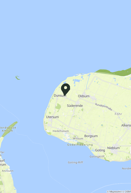 Dunsum prägt ein landwirtschaftlicher Charakter und ist bekannt für seine Ruhe und Beschaulichkeit. In den Sommermonaten starten von Dunsum Wattwanderungen zur Insel Amrum, die ebenso wie Sylt von Dunsum aus zu sehen ist. Besonders schön und romantisch sind die Sonnenuntergänge an der Westküste Föhrs. Hier in Dunsum kann man den Alltag vergessen und zur Ruhe kommen.