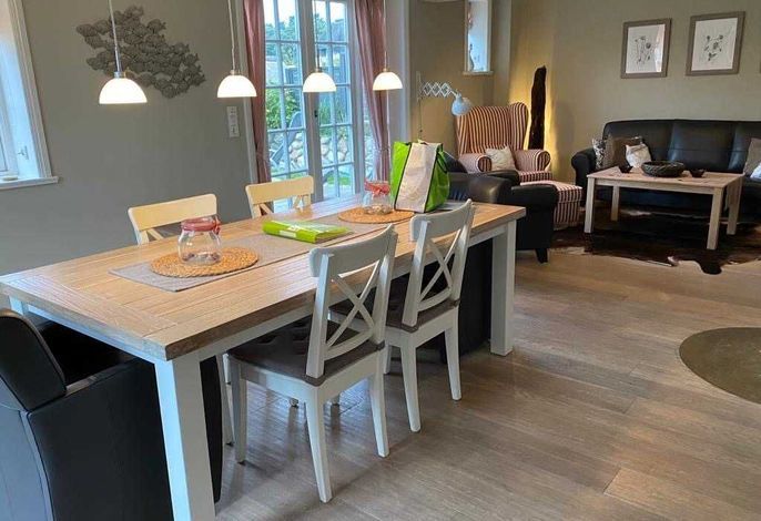 Freuen Sie sich auf eine sehr großzügige, komfortable Doppelhaus-Hälfte mit vielen friesischen Elementen. Außen u.a. Reetdach, rotes Mauerwerk, Holzsprossenfenster, Friesenwall, Strandkorb, Reetdach-Gartenhütte und einer...