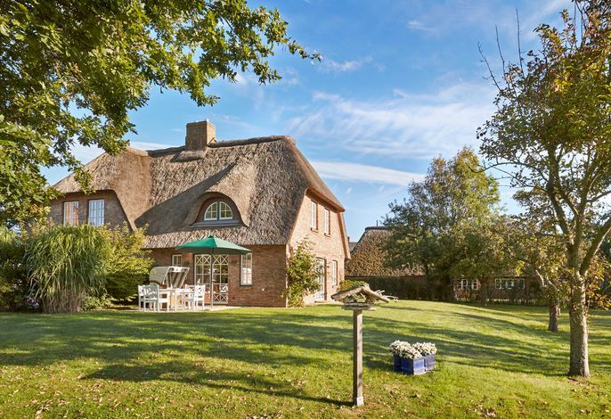 Lassen Sie Ihre Seele baumeln?… Herzlich Willkommen in unserem charmanten Utersumer Friesenhaus. Das Reetdachhaus mit den zwei Haushälften Marta und Maj bietet Ihnen eine behagliche Atmosphäre und stilvolles Ambiente für einen erholsamen Urlaub. Nur wenige Gehminuten vom Meer und Strand entfernt liegt das sehr gepflegte Reetdachobjekt auf einem sonnigen 2.000 qm großen Grundstück mit Apfel-, Birnen- und Pflaumenbäumen. Genießen Sie die ersten Sonnenstrahlen des Tages im Standkorb im Garten oder an kalten Tagen die Sauna. Erleben Sie kuschlige Momente am historischen Kachelofen. Die liebevoll ausgewählte gehobene Ausstattung, u.a. der Eichendielenfußboden, lädt Sie ein zu einer wunderschönen Zeit zu zweit oder mit der Familie. Wir freuen uns auf Sie.