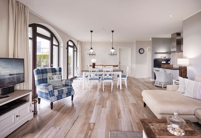 Auf einem wunderbar gelegenen 3.500 qm großem Grundstück, nur wenige Meter vom Strand entfernt, befindet sich die exklusive Wohnanlage Quartier Rothtraut. Hier haben Sie die Nordsee direkt vor der Tür. In der Wohnung 1 im Erdgeschoss werden Sie einen unvergesslichen Urlaub erleben. Zwei Terrassen laden zum Urlaub im Freien ein. Genießen Sie die Sonne schon zum Frühstück! Die Küche mit Kochinsel ist hochmodern eingerichtet und der Weinkühlschrank bietet Platz für Ihre eigenen Weine. Im Untergeschoss steht Ihnen ein eigener Wellnessbereich mit Sauna und Duschbad zur Verfügung. Genießen Sie zu jeder Jahreszeit einen traumhaften Urlaub auf der Nordseeinsel Föhr.