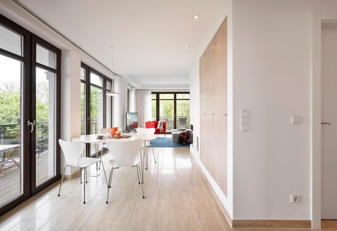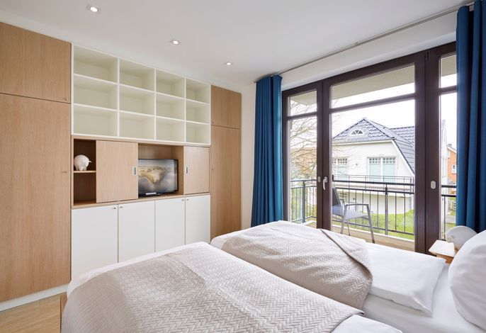 Auf einem wunderbar gelegenen 3.500 qm großem Grundstück, nur wenige Meter vom Strand entfernt, befindet sich die exklusive Wohnanlage Quartier Rothtraut. Hier haben Sie die Nordsee direkt vor der Tür und genießen die frische Brise und den Blick auf die Halligen. Ein paar Schritte und Sie gelangen auf die Promenade, welche Sie ins Herz von Wyk führt. In Ihrer Wohnung mit drei Balkonen genießen Sie in einem schönen und modernen Ambiente Ihren Urlaub.