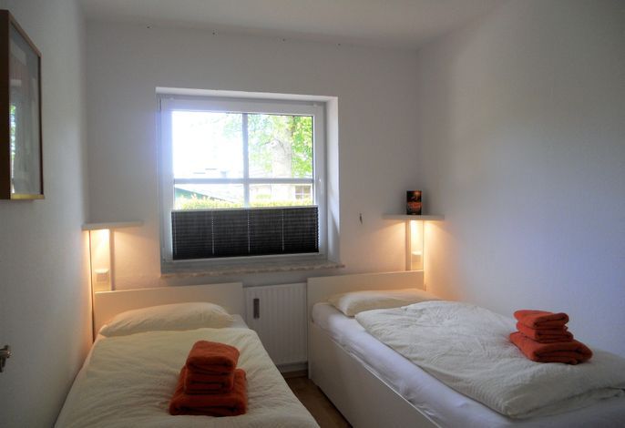 Ruhig gelegen mitten in der kleinen Föhrer Stadt Wyk liegt unsere gepflegte, kleine Erdgeschosswohnung Rugstieg 8/2 (33qm) für 2 Personen. Das lichtdurchflutete Wohnzimmer mit Schlafsofa, Flachbild-TV, DVD-Player, WLAN, Stereoanlage und integrierter Essecke bietet Ihnen den Zugang zur eigenen kleinen Terrasse, wo Sie schöne Sonnenstunden genießen können. Eine Pantryküche mit 2 Kochplatten, Kühlschrank mit Gefrierfach, Kaffeemaschine (Senseo Duo) und Wasserkocher ist zweckmäßig und funktional. Das Das Bad mit Fenster verfügt über eine Dusche mit Schiebetür und ist hell gefliest. Im Schlafzimmer finden Sie zwei Einzelbetten vor, die geruhsame Nächte versprechen. Das Haus mit seinen vier allergikergerechten Ferienwohnungen bietet seinen Gästen zur gemeinschaftlichen Nutzung weiterhin im Untergeschoss Waschmaschine und Trockner, eine Sauna und einen kleinen Fitnessraum an sowie den gemeinschaftlich Garten.