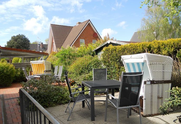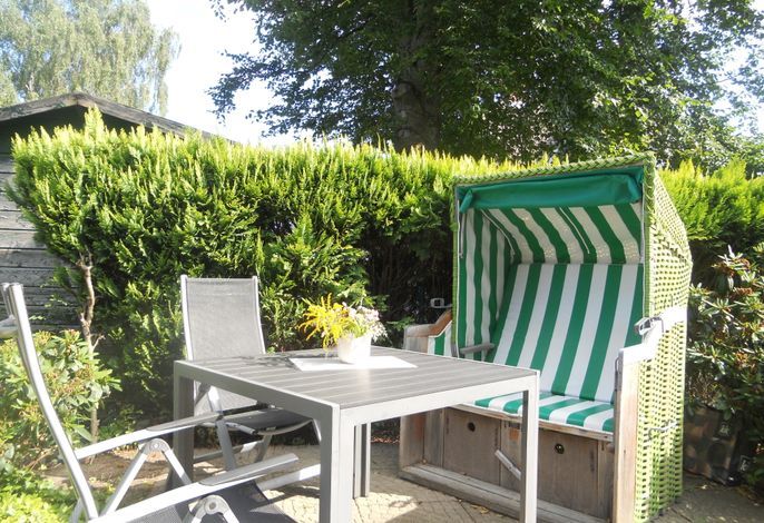 Die Obergeschosswohnung im Rugstieg in Wyk eignet sich hervorragend für Familien. Hinter dem Haus erwartet Sie ein kleiner Außensitzplatz mit Strandkorb und im Untergeschoss des Hauses befindet sich zur gemeinschaftlichen Nutzung ein kleiner Fitnessraum sowie eine Sauna.