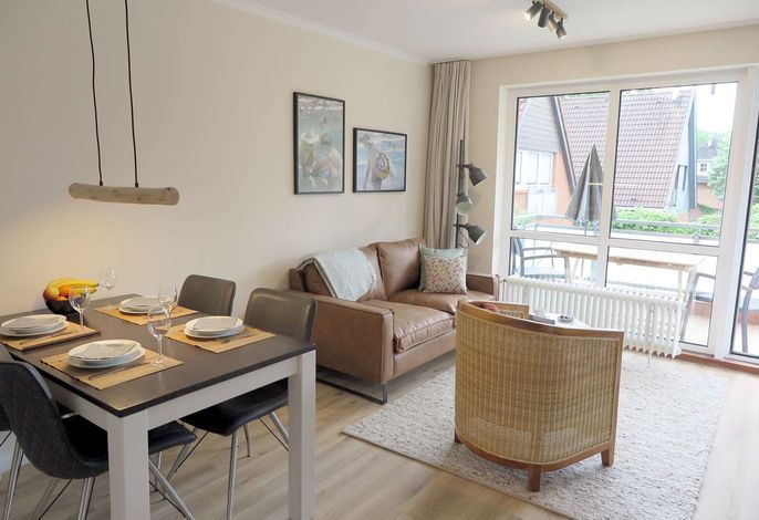 Willkommen in bester Stadtlage im Herzen von Wyk auf Föhr und einer Ferienwohnung, die alle Vorzüge einer zentralen und dennoch ruhigen, naturnahen Lage bietet.