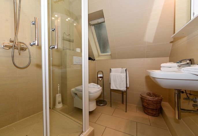 Die Wohnung verfügt über ein renoviertes Duschbad und eignet sich ideal für Familien oder kleine Gruppen.