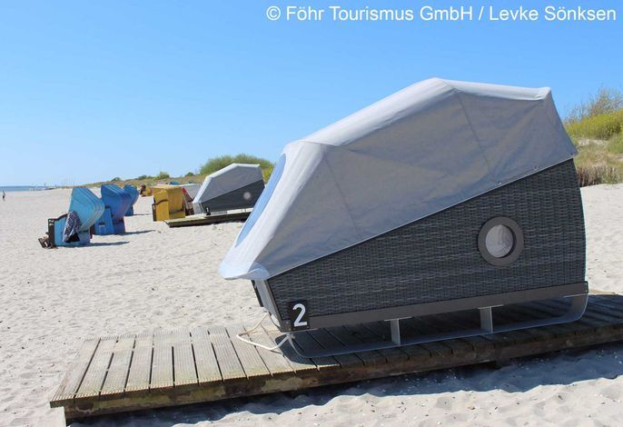 Sind Sie bereit für ein unvergessliches Schlaferlebnis mit Meeresrauschen? Dann haben Sie die Möglichkeit den Schlafstrandkorb in Nieblum für 1 Nacht zu buchen und Sie erleben nachts einen atemberaubenden Sternenhimmel. Nirgendwo sonst können Sie in Nieblum näher am Wasser übernachten!