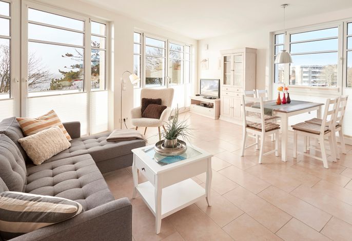 Herzlich Willkommen im Schloß am Meer! Direkt am Wyker-Südstrand gelegen, bietet es den Gästen einen einzigartigen Panoramablick über die Nordsee und die Halligen..Genießen Sie die Sonne auf Ihrer Süd-West Terrasse oder Sie...