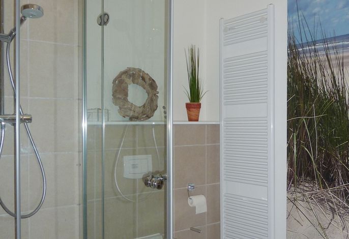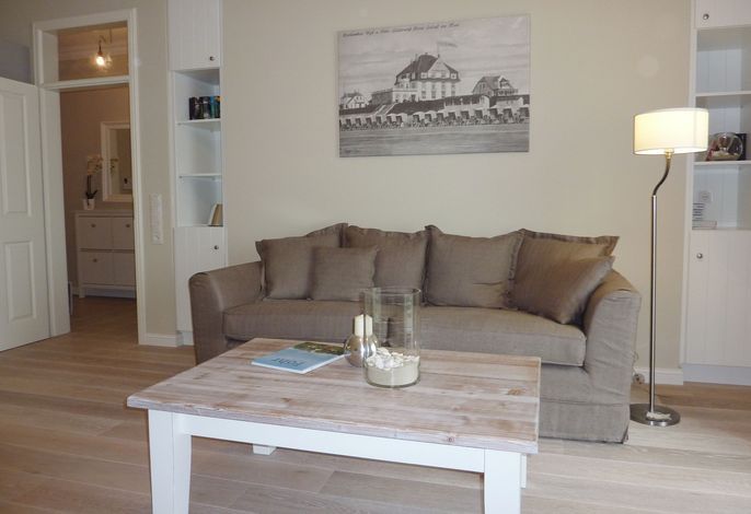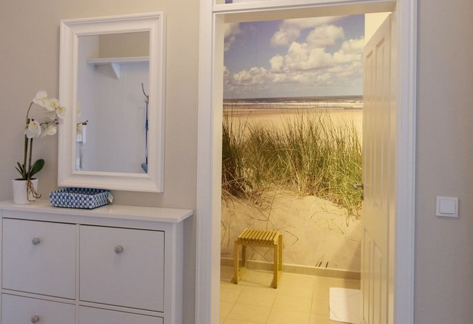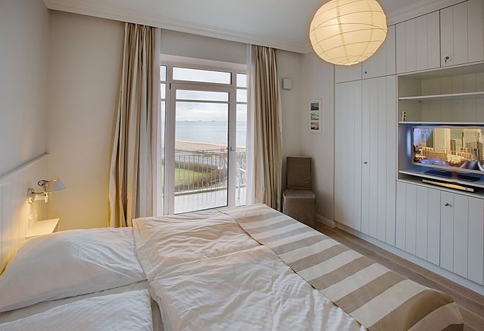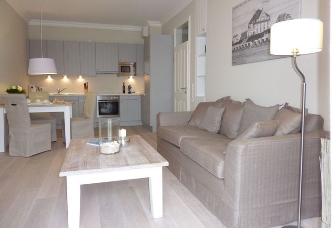 Diese exklusive Wohnung liegt im 2. OG hinter historischer Fassade, die beim Neubau erhalten geblieben ist. Sie bietet vom Wohn-, Schlaf- und Essbereich einen wunderschönem Blick auf den Strand, die Nordsee und die Halligen. Die helle 2-Zimmerwohnung ist u.a. mit hochwertigen Einbauschränken, moderner Landhaus-Küche, einer Rain Air Dusche und einem überlangen Bett ausgestattet. Italienische Fliesen [&] Eichenparkett mit Fußbodenheizung sowie die Einrichtung im Riviera Maison Stil schaffen eine Wohlfühlatmosphäre. Der windgeschützte Süd-Ostbalkon (über 10qm) bietet eine Sonnenliege und zwei Sessel zum Träumen. Nach einem langen Urlaubstag entspannen sie in der hauseigenen Sauna und lassen Ihre Seele baumeln.