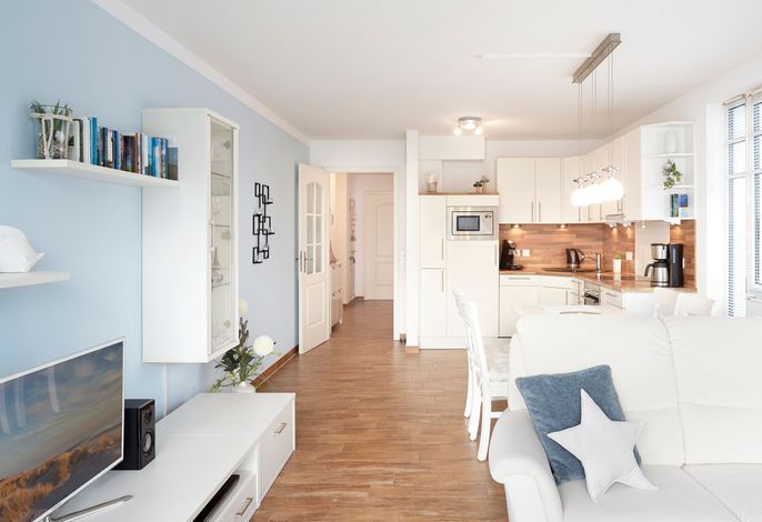 Wir begrüßen Sie im Schloß am Meer, der exklusiven Wohnanlage direkt am Wyker-Südstrand gelegen. Ihre Wohnung liegt im 2.Obergeschoss. Hier haben Sie einen Süd-Balkon ganz für sich allein und einen Blick auf die Nordsee und die Halligen. Dieser einzigartige Panoramablick ist unvergesslich. In nur wenigen Schritten befinden Sie sich auf der Promenade, die Sie ins Herz von Wyk führt. Hier laden Geschäfte zum Bummeln ein, Cafes und Restaurants verwöhnen Sie mit kulinarischen Köstlichkeiten.