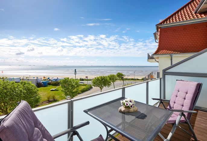 Wir begrüßen Sie im Schloß am Meer, der exklusiven Wohnanlage direkt am Wyker-Südstrand gelegen. Ihre Wohnung liegt im 2.Obergeschoss. Hier haben Sie einen Süd-Balkon ganz für sich allein und einen Blick auf die Nordsee und...