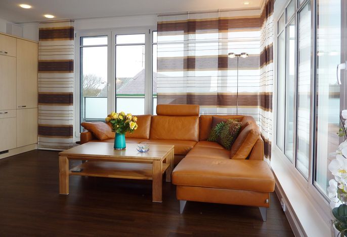 Wir begrüßen Sie im Schloß am Meer, der exklusiven Wohnanlage direkt am Wyker Südstrand gelegen. Ihre Wohnung liegt im Staffelgeschoss. Hier haben Sie eine große Dachterrasse für sich und einen Blick auf die Nordsee und die Halligen. Dieser einzigartige Panoramablick ist unvergesslich. Genießen Sie die Sonne schon beim Frühstück! In nur wenigen Schritten befinden Sie sich auf der Promenade, die Sie ins Herz von Wyk führt. Hier laden Geschäfte zum Bummeln ein und in Cafés und Restaurants werden Sie mit kulinarischen Köstlichkeiten verwöhnt