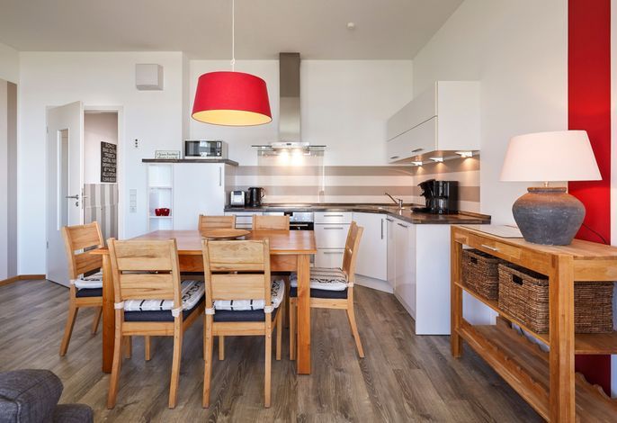 Wir begrüßen Sie im Schloss am Meer, der exklusiven Wohnanlage direkt am Wyker-Südstrand gelegen. Ihre Wohnung liegt Hochpaterre hinter der historischen Fassade, welche beim Neubau erhalten wurde. Hier laden drei Balkone ein, den Blick auf die Nordsee und den Halligen zu genießen. Ein einzigartiger Panoramablick erwartet Sie. Genießen Sie die Sonne schon beim Frühstück! In nur wenigen Schritten befinden Sie sich auf der Promenade, die Sie ins Herzen von Wyk führt. Hier laden Geschäfte zum bummeln ein, Cafes und Restaurants verwöhnen Sie mit kulinarischen Köstlichkeiten.