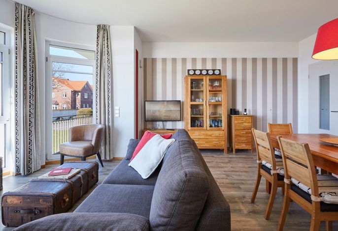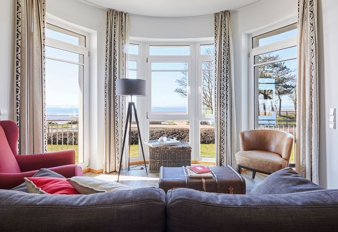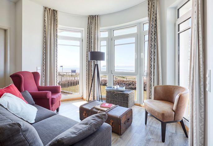 Wir begrüßen Sie im Schloss am Meer, der exklusiven Wohnanlage direkt am Wyker-Südstrand gelegen. Ihre Wohnung liegt Hochpaterre hinter der historischen Fassade, welche beim Neubau erhalten wurde. Hier laden drei Balkone ein,...