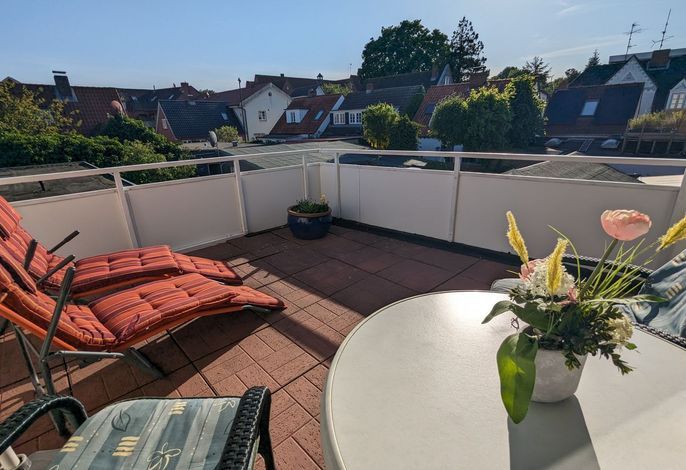 Die Wohnung Schwalbennest liegt zentral in Wyk, nur wenige Schritte vom Meer und dem schönen Sandstrand entfernt. Die gute Nordseeluft können Sie auch auf dem großen, zum Teil überdachten Süd-Balkon genießen. Hier können...