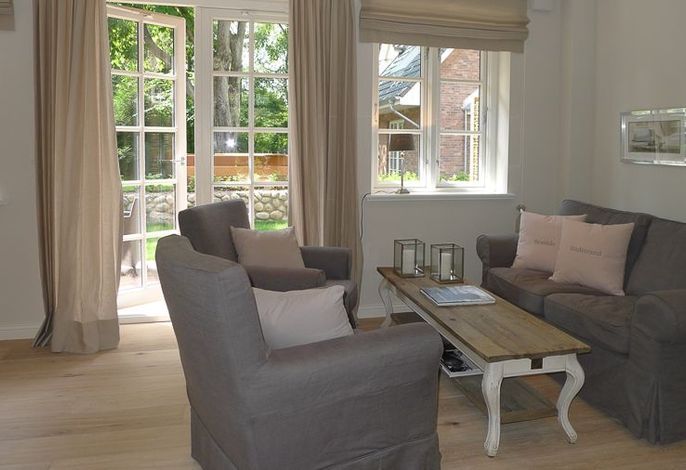 In unmittelbarer Nähe zum Wyker Südstrand, und in direkter Nachbarschaft zu den Flächen des alten Golfplatzes, auf dem Gelände des ehemaligen Kaiserhofes ist die „Residenz am alten Golfplatz“ entstanden. Mit nur wenigen Schritten gelangen Sie zum Strand und zur Promenade, welche Sie ins Herz von Wyk führt. Die Innenstadt mit ihren Café,s, Restaurants sowie Einkaufsmöglichkeiten ist so schnell und bequem zu erreichen. Das Reetdachdoppelhaus wird mit einem traditionellen Friesenwall umgeben. Auch bei der hochwertigen Innenausstattung wurde an alles gedacht von dem großzügigen Wohn-Essbereich mit antikem Kachelofen bis hin zur eigenen Sauna hier genießen Sie die schönsten Tage des Jahres.