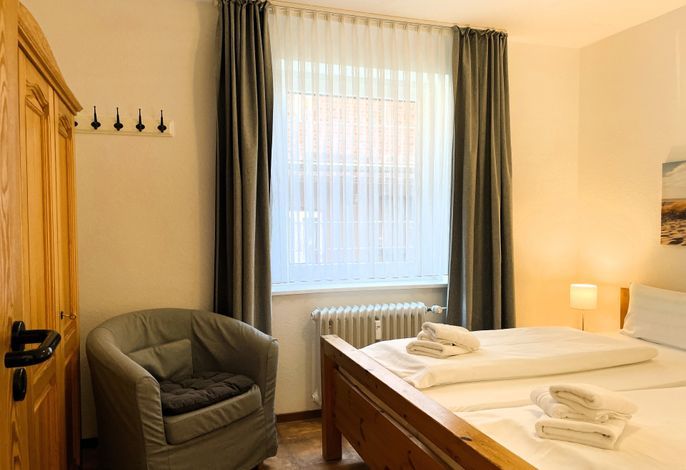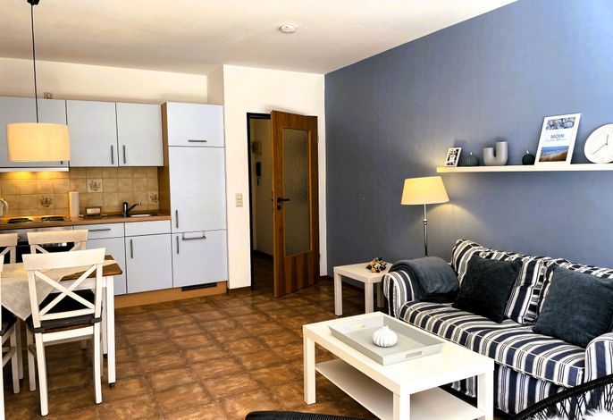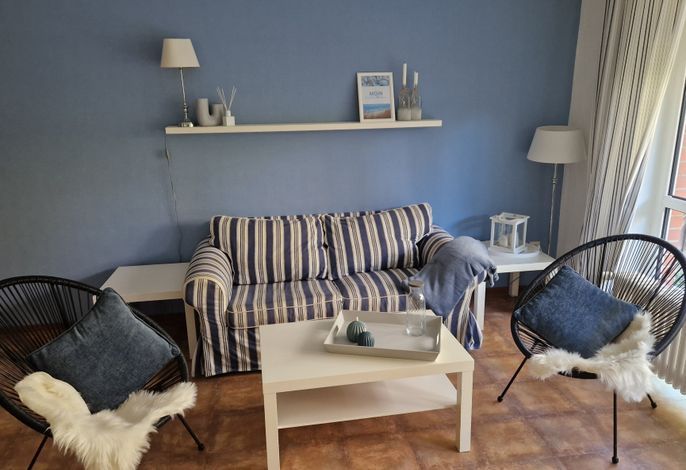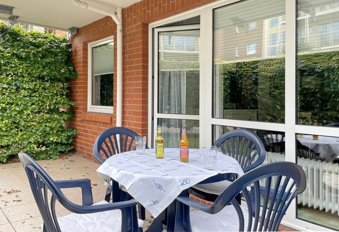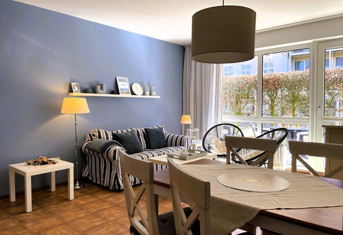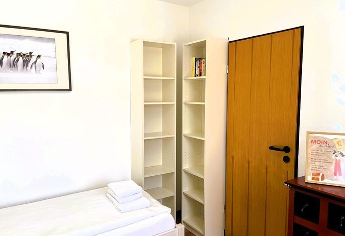 Unser Seeadler 02 ist eine helle EG-Wohnung in der beliebten Lage am Sandwall- unweit der Wyker Innenstadt. Genießen Sie herrliche Urlaubstage in dieser lichtdurchfluteten Wohnung. Mit einem Elternschlafzimmer mit Doppelbett und einem Kinderzimmer mit 2 Einzelbetten, dem Bad mit Dusche und dem einladenden Wohnraum, der das Herzstück der Wohnung bildet, bietet sich die Wohnung ideal für einen Urlaub für 2 bis 4 Personen an. Im Wohnraum erwartet Sie eine gemütliche Sitzecke mit integriertem Esstisch und einer gut ausgestatteten Küchenzeile. Maritime Accessoires geben der Wohnung ihren nordfriesischen Charme. Im Sommer lädt die eigene Terrasse zum Verweilen ein, wenn es Sie mal nicht direkt an den Strand zieht, der nur wenige Schritte entfernt liegt. Buchen Sie unseren Seeadler 02 für erholsame Urlaubstage!