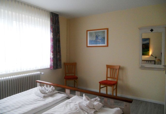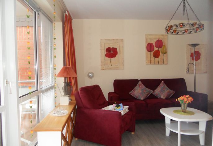 In der ersten Etage der Wohnanlage Seeadler befindet sich der Seeadler 06 und heißt bis zu vier Personen Willkommen. Die ca. 60 qm große 3-Zimmer- Wohnung ist geschmackvoll eingerichtet, so dass Sie sich gleich wohlfühlen können. Der Wohnbereich mit bequemer Sitzgarnitur, Essplatz und anliegender gut ausgestatteter Küchenzeile ist einladend hell und verfügt über WLAN, Radio sowie einem Flachbild-TV. Von hier gelangen Sie auf den Südbalkon mit Gartenmöbeln ( ca. April bis Oktober). Das Bad, mit Fußbodenheizung, ist funktional mit Dusche, WC und Waschtisch. Angenehme Nächte verbringen Sie nach erlebnisreichen Urlaubstagen in den beiden Schlafräumen, wovon eines über ein Doppelbett, das andere über zwei Einzelbetten verfügt. Die Wyker Innenstadt und der Strand sind nur einen Katzensprung entfernt, so dass Sie schnell mitten im Geschehen sind, doch die Lage in zweiter Reihe am Sandwall eine angenehme Ruhe ohne den direkten Trubel bietet. Schauen Sie sich gleich die Fotos an und überzeugen Sie sich selbst.